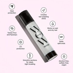 Glossing serum smooths frizz, seals split ends, prevents color fade, has UV + heat protection